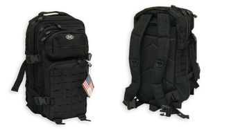 2 больших основных отделения на молнии и сетчатый карман, 2 больших передних кармана на молнии, регулируемые и мягкими лямками с D-кольцами, встроенным на липучке карманом для упаковки ГЭС на спине, различные Molle точки крепления, ручка для переноски, дышащая задняя панель Schulterriemenmesh, около 30 литров , 100% хлопок, размер: Рюкзак: 45 х 25 х 20 см. Цвет черный.