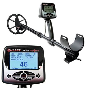 Chaser имеет вход для стереонаушников 3,5 мм (1/8 дюПревосходно сбалансированный детектор, имеющий общий вес всего 1,5 кг (3,3 фунта), включая батареи и Ultimate 9? стоковая катушка.